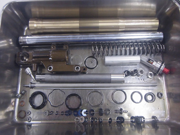 フロントフォークインナーパイプに錆があり、進行していたのでクロームメッキの再メッキ加工を施して再生しました。