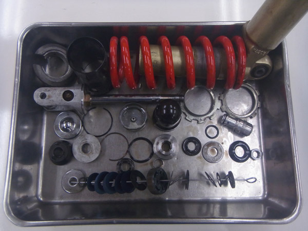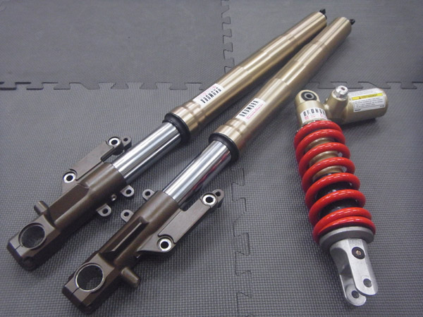 KYB製インナーパイプ径φ43mm倒立フロントフォークと、KYB製モノショックです。