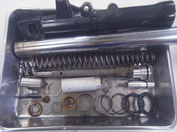 このマシンに装着されているKYB製フロントフォークは、フリーピストンタイプのシンプルな構造です。