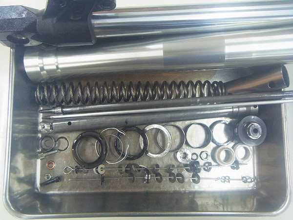 今回はフロントフォークのフルメンテナンスをご依頼いただきました。こちらのお客さまはFJR1300、DUCATI ST-4、そして今回のVersys650と、3台続けてサスペンションフルメンテナンスをお任せいただきまました。私たちの仕事を気に入っていただいたことはとても光栄なこと。末永いお付き合いをさせていただきたいと思います。