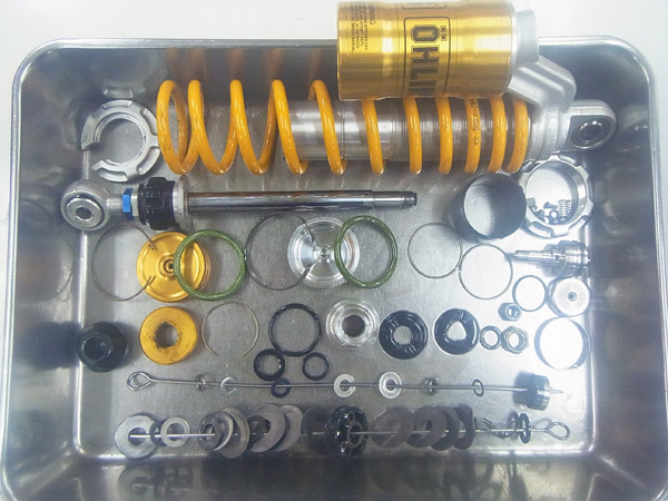 今回はOHLINSリヤショックのフルメンテナンスをご依頼いただきました。