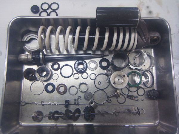 今回はWP製リヤショックのフルメンテナンスを私どもにお任せいただきました。