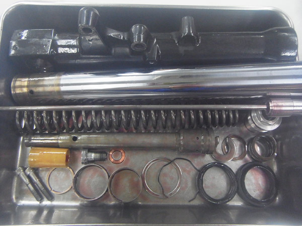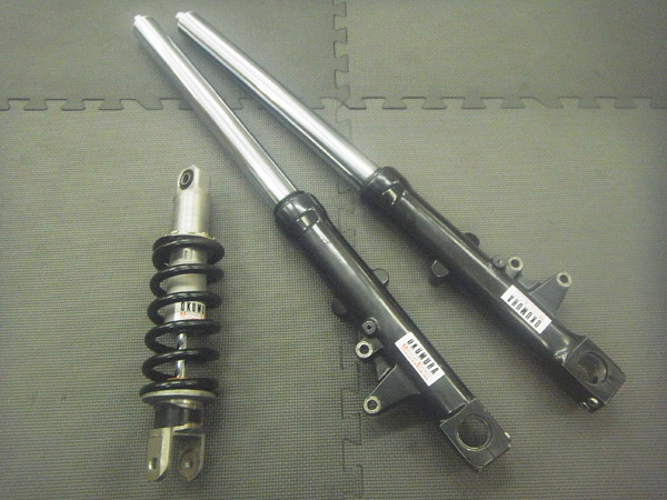 KYB製インナーパイプ径Φ43正立フロントフォークとKYB製モノショックです。