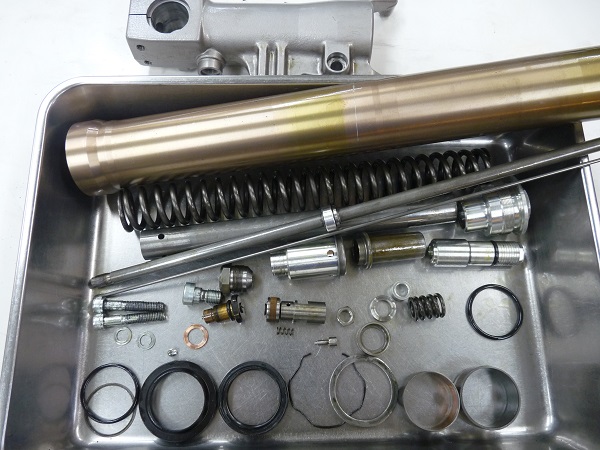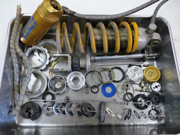 当時のワールドスーパーバイク世界選手権に出場するために必要なホモロゲーションをクリアするために250台のみが限定で生産されました。国内では50台が限定で予約販売されたとのことですので、その中の貴重な1台を所有されているお客さまから前後サスペンションのMEダンピングチューニングでのセットアップをお任せいただきました。フロントフォークにはMEチタンコーティング(ゴールド色)も併せてご依頼いただきました。生産から20年近く経過していますが、きっちりと手を加えることでベストコンディションを保ち続けることができます。