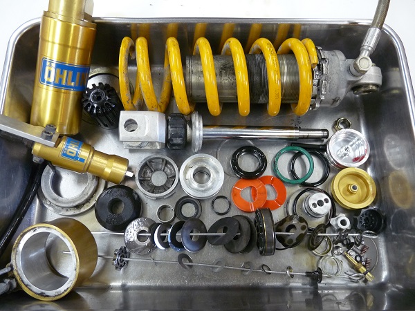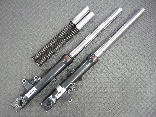 KYB製インナーパイプ径φ43正立フロントフォークと、OHLINS製モノリヤショックです。