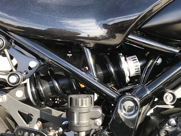 Z900RSノーマルのフロントフォーク、リヤショックをベースにしながらも、スクーデリアオクムラのテイストでダンピングチューニングを施すことで、落ち着きのあるしなやかで接地感がつかみやすく、質感の高いサスペンションに仕上げることができます。
