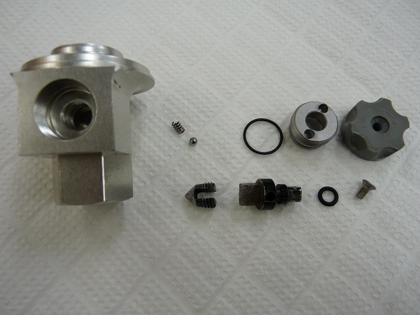 研磨で磨きこんだパーツです。Oリングを新しいものと交換して、グリースをたっぷり詰め込んで組み上げます。これで当分の間は水の浸入も防ぐことができますから問題なく調整機能が働きます。