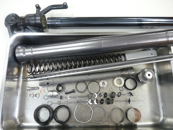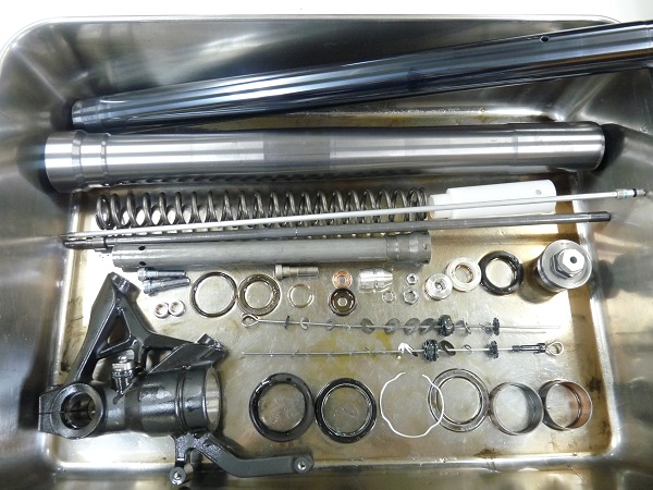 今回はフロントフォークのMEチタンコートチューニングをご依頼いただきました。最先端の電子制御も安定した足回り、サスペンションがあってのもの。MEダンピングチューニングで最適なダンピング特性と、乗られる方に合わせたスプリングレートのMEスーパースポーツスプリングでのセットップしました。作動フリクションの少ないインナーパイプ・チタンコーティング(ネイビー色)で、さらにスムースなフロントフォークの完成です。