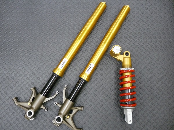 KYB製インナーパイプ径φ43倒立フロントフォークと、KYB製モノリヤショックです。