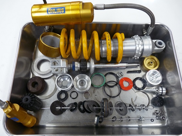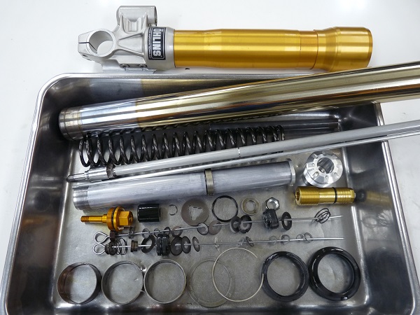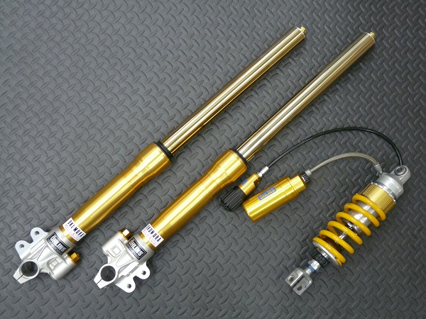 OHLINS製インナーパイプ径φ43正立フロントフォークと、OHLINSモノリヤショックです。