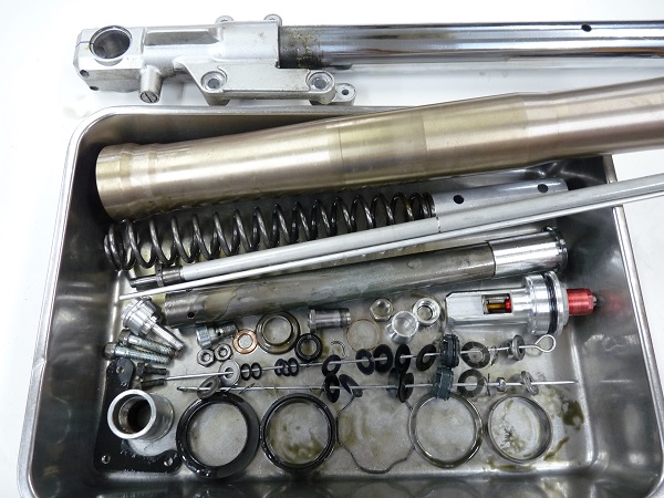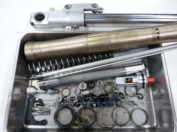 今回はフロントフォークのフルメンテナンスをお任せいただきました。「尖がった」バイクを乗りこなすことは楽しいこと。そのためにはしっかりとしたメンテナンスが必要です。スクーデリアオクムラがお手伝いいたします。