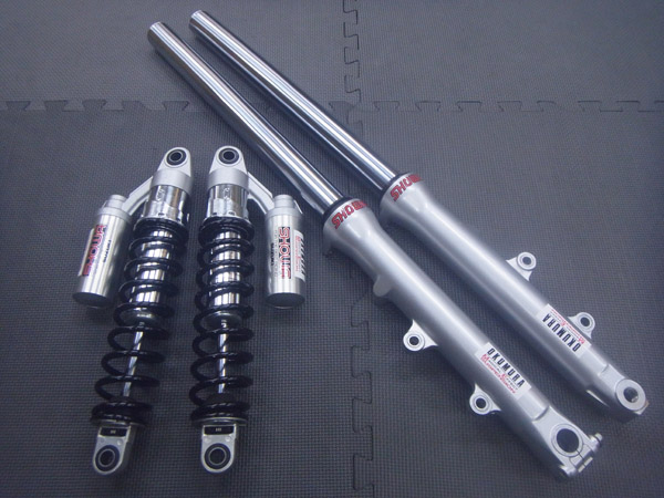 SHOWA製インナーパイプ径Φ41正立フロントフォークとSHOWA製ツインショックです。