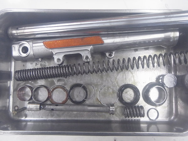 今回、フロントフォークのMEダンピングチューニングをご依頼いただいたXL1200Sは、2003年まで生産されていたモデルで、ツインプラグ、ハイスペックの前後サスペンション、フロントブレーキはダブルディスクと一番スポーツライディング向けのモデルです。