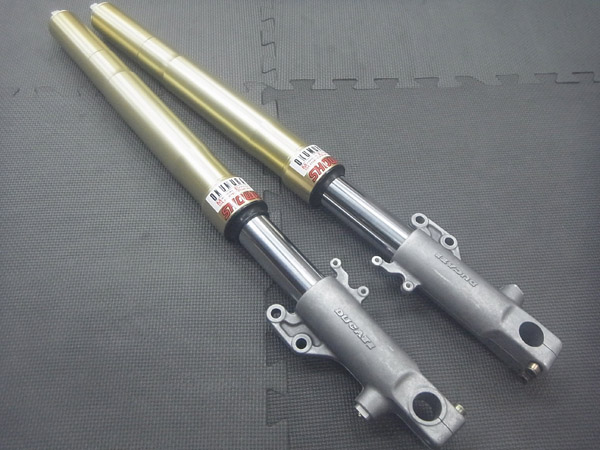 SS900のフロントフォークにMEダンピングチューニングとMEスーパースポーツスプリングのセットアップによって、Monster900に装着する前提で、かつ、お客さまに合わせた仕様設定に仕上げました。
