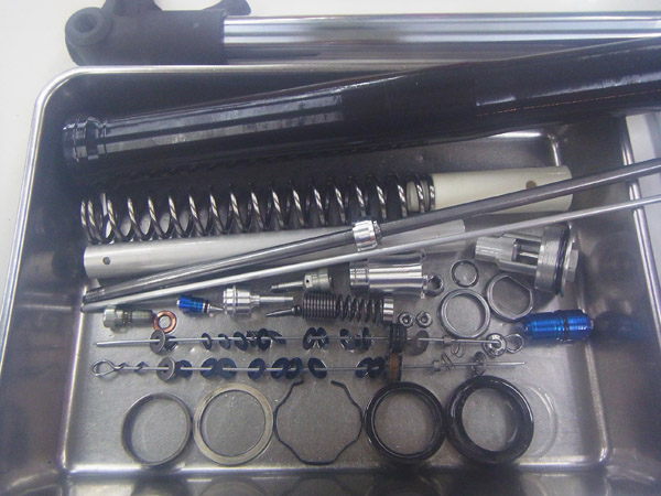 今回はトライアンフ・ストリートトリプルフロントフォークの突き上げ感の改善と、前後のバランスを保つためにもフロントフォークのバージョンアップを求めてMEダンピングチューニングのご依頼をいただきました。