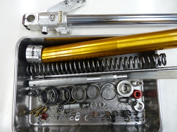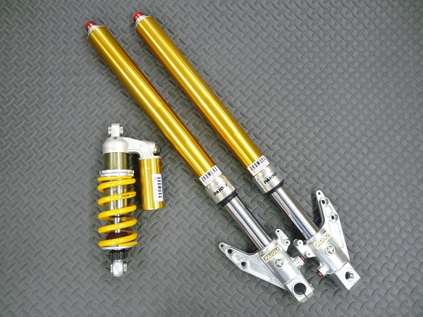 PAIOLI製インナーパイプ径φ41倒立フロントフォークとOHLINSリヤショックです。