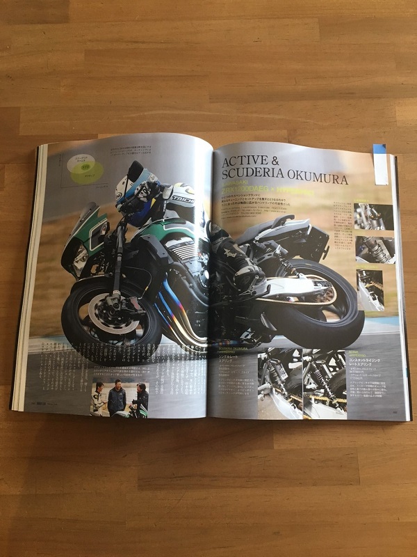 アクティブさんが輸入、販売している「HYPERPRO」ブランドのサスペンションをスクーデリアオクムラのテイストでチューニング、セットアップしたZRX1200DAEGのインプレッションを掲載していただきました。