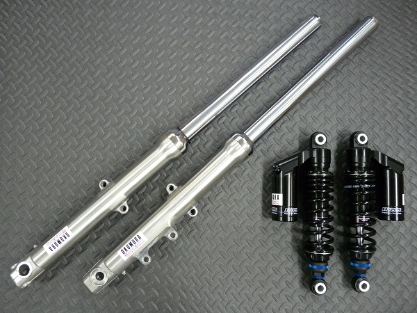 SHOWA製インナーパイプ径φ39正立フロントフォークと、OKUMURA HYPERPROスペシャル仕様リヤショックです。
