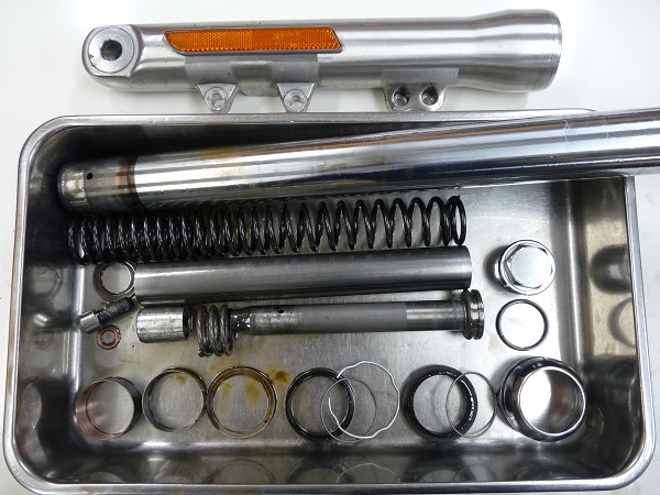 ハーレーダビッドソンの魅力は本当に幅が広く多種多様のカテゴリーが存在しており、奥が深くてとても全てを掌握できるものではありません。これまでサスペンションチューナーとして、大勢のハーレー乗りお客さまとお付き合いさせていただいておりますが、どのカテゴリーのハーレー乗りのお客さまもサスペンションに対するご不満を感じている方がとても多くいらっしゃいます。バイクに乗りであれば誰しもご自身のバイクを「もっと乗りやすくしたい」「不安なく走らせたい」と思うもの。それはハーレーでも同じはずです。それでも「ハーレーはこんなもの」「ハーレーだから仕方ない」とあきらめてしまっている方が少なくありません。ハーレーのフロントフォークは、スポーツスターを除いて「フリーピストンタイプ」の構造が多く、カートリッジタイプのような「バルビング」によるダンピングチューニングはできません。スクーデリアオクムラではオリジナルのチューニング方法によって、ほとんどのハーレーのフロントフォークのダンピングチューニングが可能です。