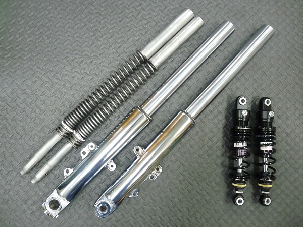 SHOWA製インナーパイプ径φ49正立フロントフォークと、HYPERPRO製ツインモノショックです。