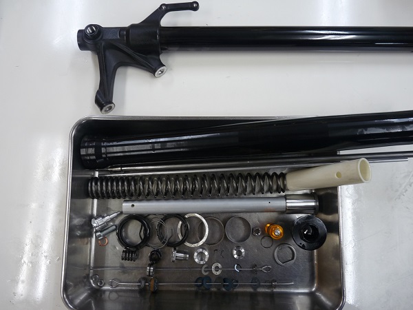 Y’S gearブランドKYB製インナーパイプ径φ41倒立フロントフォークと、PENSKE RACING SHOCKS8987リモートタイプです。
