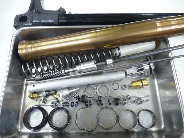 今回はフロントフォークをMEダンピングチューニング+スプリングレート0.95kgf/mのMEスーパースポーツスプリングでのセットアップをご依頼いただきました。