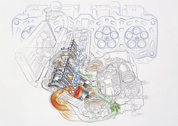 「GENESIS」世界初、水冷DOHC5バルブ(20バルブ)並列4気筒エンジンを45°前傾させて搭載、ダウンドラフトキャブレターをシリンダーヘッドに向けてストレートにレイアウトして、真っ直ぐな吸気経路はとても効率が良く画期的なデザインです。空いたシリンダー背後の車両重心に近いスペースに燃料タンクをレイアウトし、大きく前傾したエンジンレイアウトとともに低重心とマスの集中を実現し、以後のスーパースポーツモデルの基盤となりました。国内モデルは1985年に発売され、87年にはFZ1000への移行によって販売終了となりましたが、輸出モデルでは様々な仕様変更が加えられながら、1994年までFZ750が販売されました。今回、フロントフォークのセットアップをご依頼いただいたモデルは、フルカウル仕様の1990年モデル(2MG)です。コントロールバルブを使ったMEダンピングチューニングと0.80kgf/mのMEスーパースポーツスプリングでセットアップいたしました。
