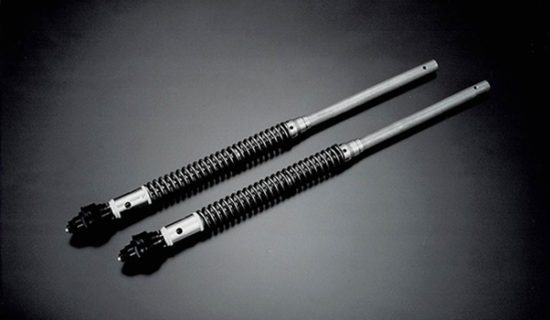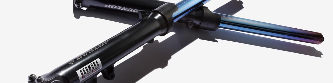 アジャスターのついていないフロントフォークに、オリジナルのインナーカートリッジを組み込み、伸び側ダンピングの調整とスプリングプリロードの調整機能を追加することができます。