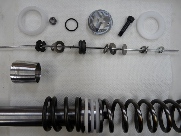 ハーレーダビッドソンの多くのモデルには「フリーピストンタイプ」構造のフロントフォークが採用されています。一部を除いてスーパースポーツモデルに採用されているような「カートリッジタイプ」が採用されることはありません。構造がシンプルでパーツ点数も少ないことから、コストを抑えられることが採用の理由だと思います。そのフリーピストンタイプのフロントフォークのパフォーマンスを高めるために、スクーデリアオクムラではオリジナルのサスペンションチューニングシステムを確立しています。ノーマルのダンパーシリンダーとスプリングの間にカートリッジタイプで使われるような「積層式」のバルブを組み込んでサスペンションオイルの流路をコントロールする方法です。「コントロールバルブ」と呼んでおり、ほとんどの「フリーピストンタイプ」構造のフロントフォークに組み込みが可能です。