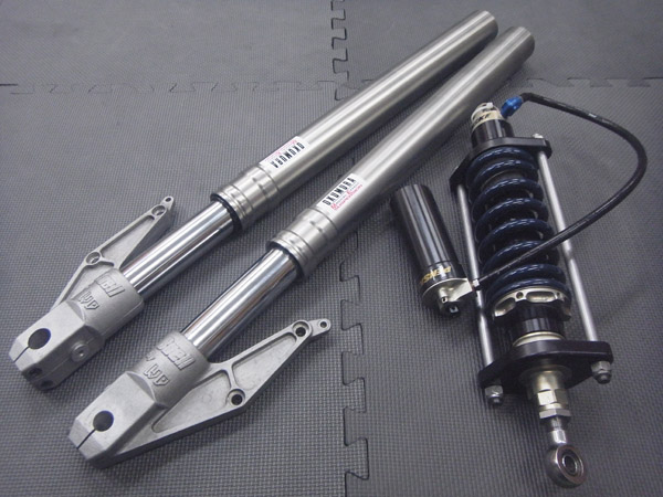 Buell S1フロントフォークはWP製φ40倒立フォーク、リヤショックはPENSKE RACING SHOCKSです。