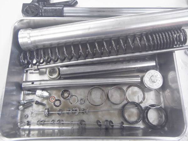 SHOWA製インナーパイプ径φ43倒立フロントフォークとSACHSリヤショックです。