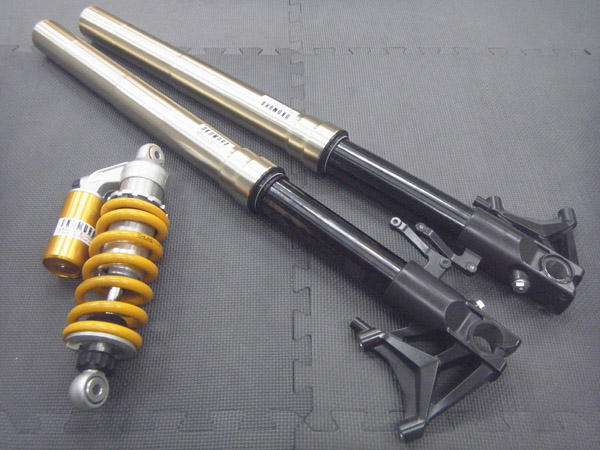 マルゾッキ製インナーパイプ径Φ50倒立フロントフォークとOHLINSリヤショックです。