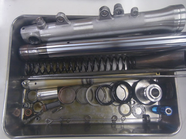 今回はフロントフォークを含めて前後サスペンション併せてのフルメンテナンスをご依頼いただきました。