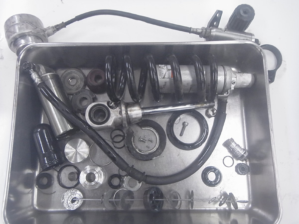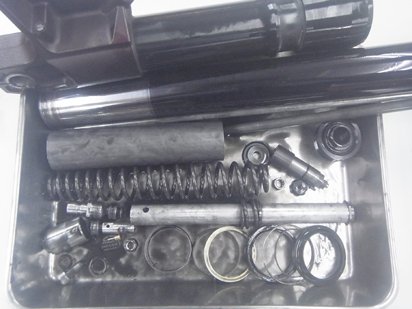 フロントフォークはコンプレッション、リバウンド共にダンピングが不足していましたので、メインピストンを交換して,