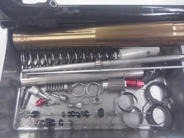 今回は前後サスペンションのMEダンピングチューニング、フロントフォークにMEスーパースポーツスプリング、リヤショックにHYPERCOILSスプリングを組み込んでセットアップいたしました。