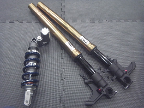 KYB製インナーパイプ径Φ43倒立フロントフォークとKYB製モノショックです。