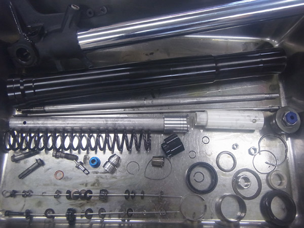 今回は前後サスペンションのフルメンテナンス、フロントフォークアウターパイプのMEブラックカシマコーティングのご依頼をいただきました。