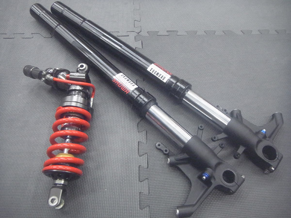 SHOWA製インナーパイプ径Φ43倒立フロントフォークとbitubo製モノショックです。