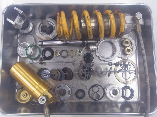 こちらのお客さまもこのマGSX-Rをとても大事にされていて、今回、使い込んだサスペンションのメンテナンスをスクーデリアオクムラにお任せいただきました。