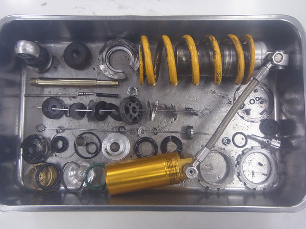 KYB製インナーパイプ径Φ41正立フロントフォークとOHLINS製モノショックです。