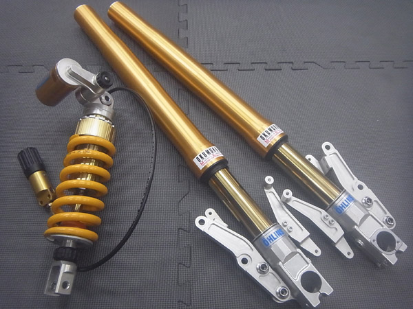 OHLINS製インナーパイプ径Φ43倒立フロントフォークと、OHLINS製モノショック、そしてOHLINS製ステアリングダンパーです。
