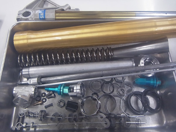 OHLINSインナーパイプ径Φ43倒立フロントフォークとOHLINSものショックです。