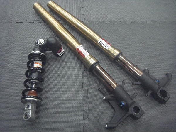 SHOWA製インナーパイプ径Φ43倒立BPFフロントフォークとSHOWA製モノショックです。