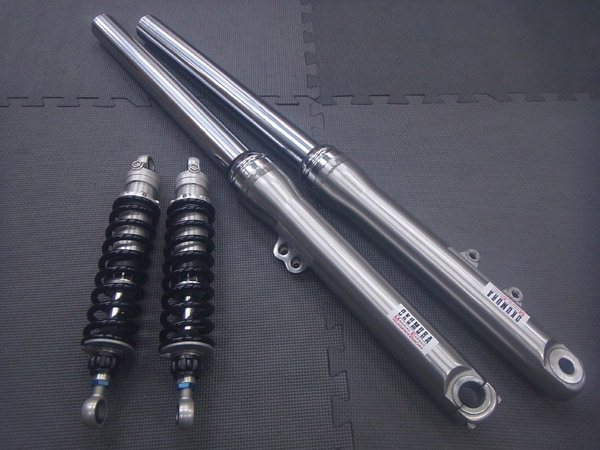 SHOWA製インナーパイプ径Φ49正立フロントフォークとOHLINSツインショックです。