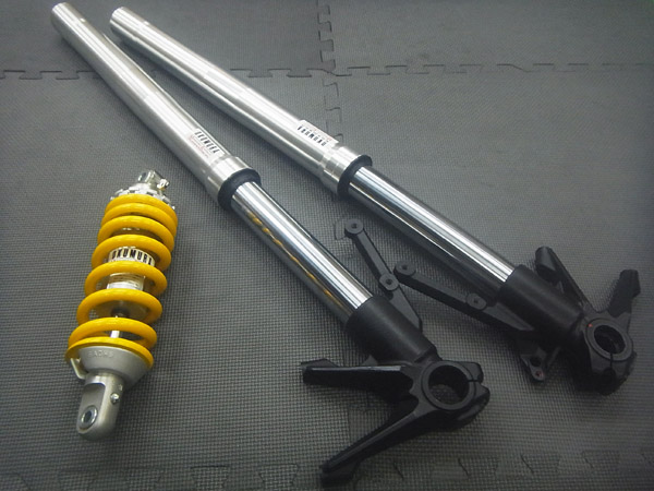 KYB製インナーパイプ径Φ43倒立フロントフォークとSACHS製モノショックです。