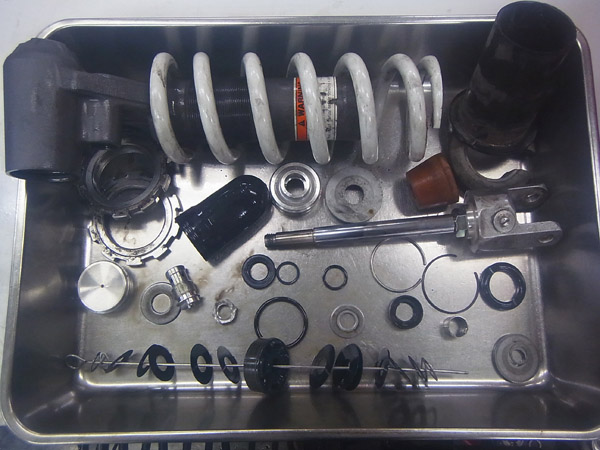 この強力なエンジンパワーを持つB-KINGを扱うための手段として、サスペンションチューニングを選んでいただきました。前後サスペンションともにサスペンションストロークスピードの低速域のダンピングを高め、ギャップ通過時などに反応するサスペンションストロークスピードの高速域のダンピングを抑えることで、ギャップ吸収性に優れ、接地感のつかみやすいサスペンションに仕上げることができます。B-KINGほどのパワーを楽しむためにはサスペンションのセットアップが不可欠。確実に乗りやすくなります。