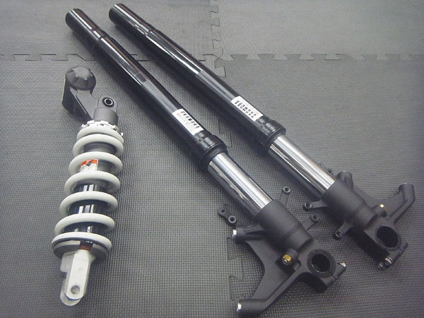 KYB製インナーパイプ径Φ43倒立フロントフォークとKYB製モノショックです。