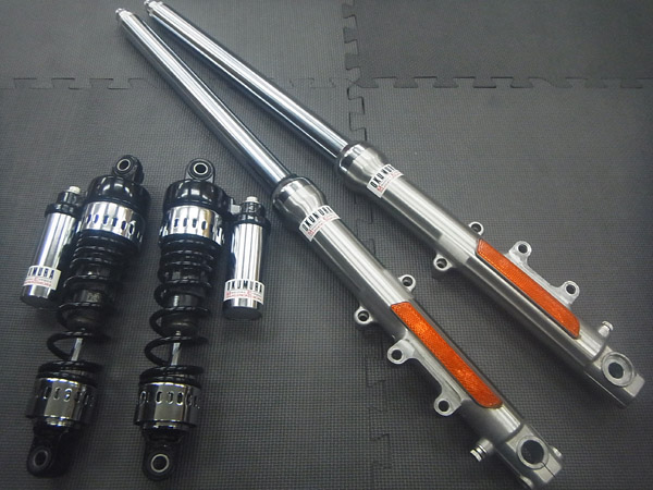 SHOWA製インナーパイプ径Φ39正立フロントフォークとSHOWA製ツインショックです。