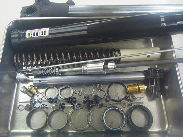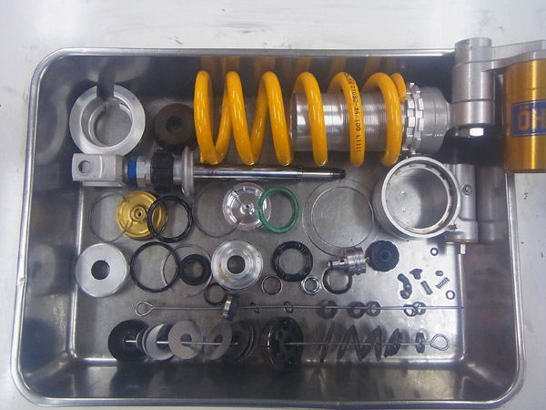 斬新で個性的なデザインなので発売から6年経過した現在でも古さを感じることは全くありませんが、6年経過したことでサスペンションの性能低下は否めません。こちらのお客さまは2012年にもフルメンテナンスのご依頼をいただいており、今回で2度目のサスペンションフルメンテナンスとなります。愛車を良い状態で保つことは楽しさと同時に安全にもつながります。シーズンオフにサスペンションメンテナンスはいかがですか?