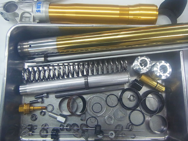 それでもアジャスターの領域だけで合わせ込みができずしっくりこない場合は、ダンピング特性をチューニングしたり、スプリングレートを変更してより緻密にマシンとライダーに合わせたセットアップをすることができます。